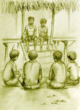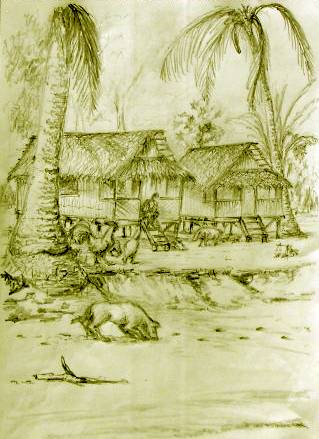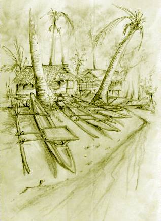 Transport your thoughts to tropic climes To a place where the sun almost always shines And there, through the eyes of a village youth Imagine, you were there in truth. Tokani, was a proud young man His features firm had a burnished tan. He lived with his people, in a land serene Where their tribal lives had no routine. In this village scene, all the surroundings could Be a part of their daily livelihood. Their houses, raised above the ground Were built on a clear and well kept mound. Arranged in lines, randomly matched All were neat and newly thatched. Not one of them, could you call grand But the outlook from their spit of land In fact, if I was reticent In a word, would call magnificent! |