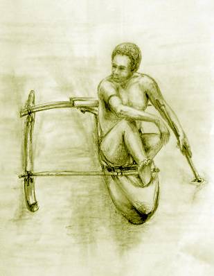 15. All his being, began to quake As the supple limb threatened to break. Below, the awesome reptile thrashed When on top, the bough and young man crashed In the midst of a deadly barrel roll Tokani fought, for his life and soul. As the massive tail, whipped and whacked From one fearful blow, his thigh bone cracked And his last thought, as his senses paled Was the foolish, impetuous scheme had failed. The wild commotion at the creek Aroused the village, from its sleep And once, they all were wide awake The men ventured to investigate. At the water's edge, in mud and dirt They found Tokani, lying quite inert. When they ascertained he wasn't dead From the bush, they formed a make-shift bed And on the litter, they carried him To be nursed by the men of medicine. |