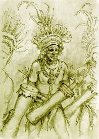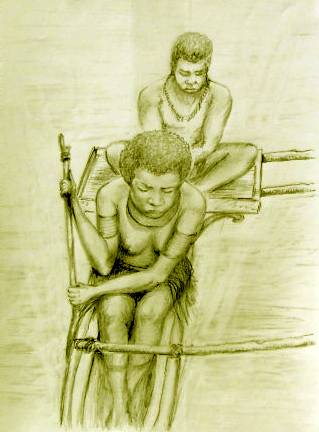 8. There were times, when they sought to interact With the people outside of their forest tract And the message sent, was not on foot But by the booming beat of the garamut. The social event, was planned for days A sing-sing, set in their traditional ways. As the nominated date approached The young ones in the dance were coached And when the tasks, had all been shared For the ceremonial dance they all prepared. As the setting sun began to fade Throbbed a kundu beat, from a forest glade. Torchlights flickered through the trees And the chanting grew on the evening breeze. Weird shadows cast along the track By the eerie masks, and their features black. Into the clearing, with great effect Burst a procession of warriors, all bedecked And the children screeched, in mock dismay As the painted figures pranced their way. |