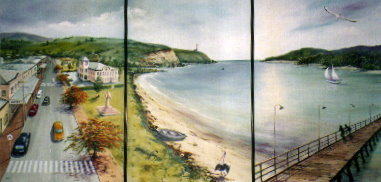 4. The Mayor and Edith Slocombe With different visions, were obsessed And berated all the townsfolk As if they were possessed. From this seething cauldron Two lovers, silently eloped And down at Jimmy's inlet Found the sanctuary they hoped. When in the arms of his beloved Tender Doctor Kelly Snow Of the trouble all around him Andy, did not want to know. For when they gazed o'er the horizon Across the calmness of the Bay From their solitude, imagined Where the gentle dugong play. Rodd Sherwin © |